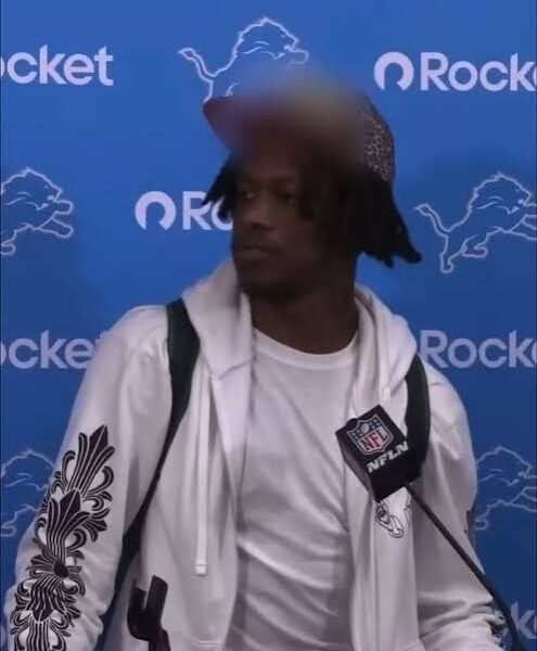During his postgame media availability, fans noticed that the Lions’ official social-media clips of Williams had a noticeable blur over the front of his hat. That small digital edit quickly sparked curiosity online — what exactly was being hidden?