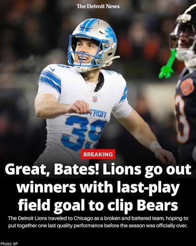 Although Detroit entered the finale already out of playoff contention and locked into a last-place finish in the NFC North, the Lions still managed to end on a high note. A 42-yard kick by Jake Bates as time ran out lifted Detroit to a 19–16 victory over the Chicago Bears, securing a winning record for the fourth consecutive season — something the franchise had not accomplished in over five decades.