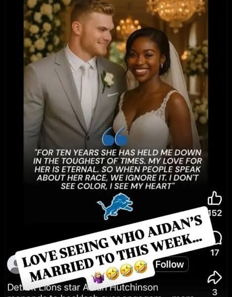 Melissa Hutchinson—who has become something of an NFL celebrity herself since Aidan entered the league in 2022—posted an obviously AI-generated photo to her Instagram story. The doctored picture showed Hutchinson standing beside a woman in a wedding gown, along with phony comments implying he was defending their relationship.